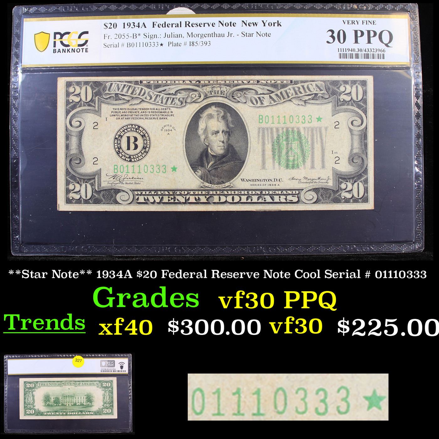 PCGS **Star Note** 1934A $20 Federal Reserve Note Cool Serial # 01110333 Graded vf30 PPQ By PCGS