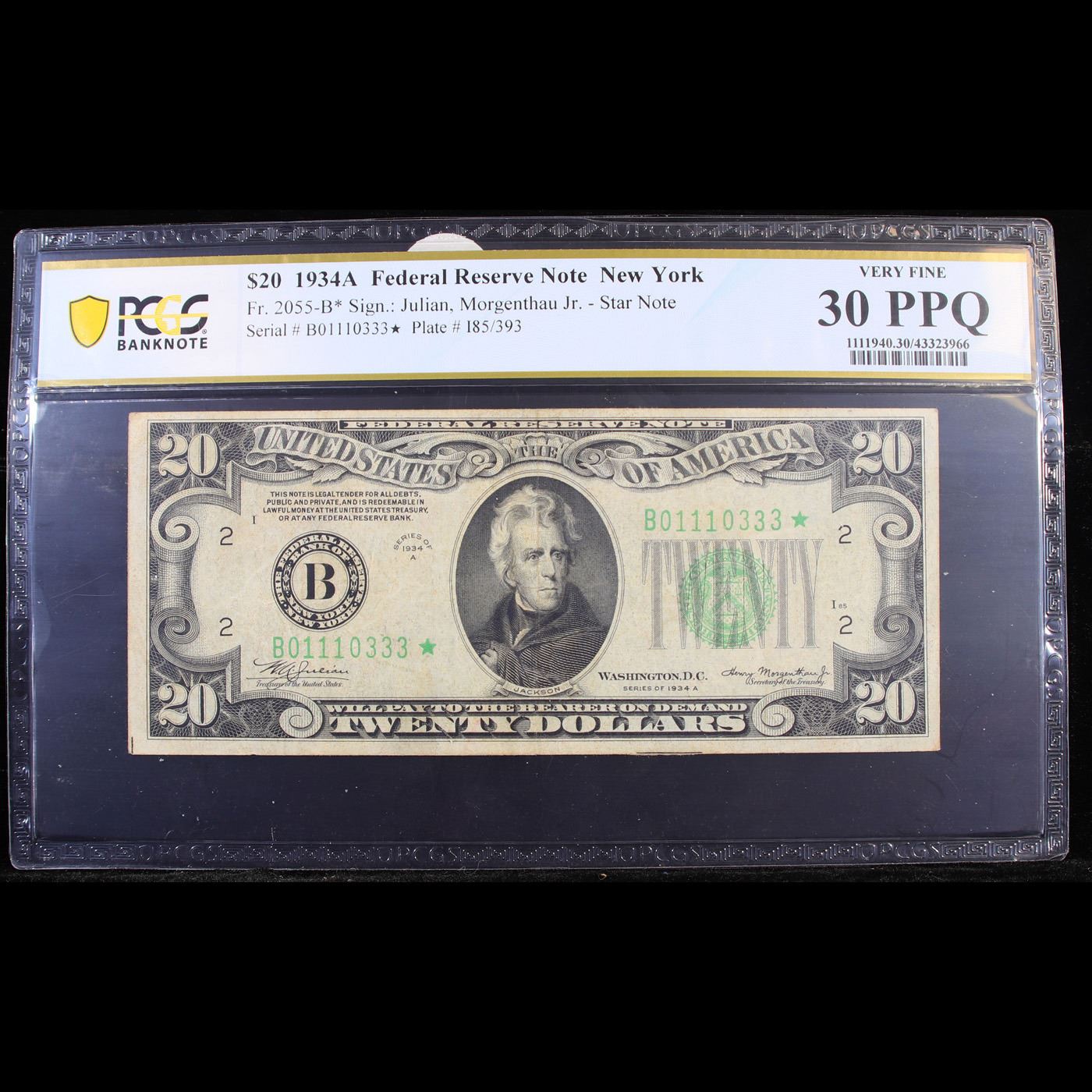 PCGS **Star Note** 1934A $20 Federal Reserve Note Cool Serial # 01110333 Graded vf30 PPQ By PCGS.