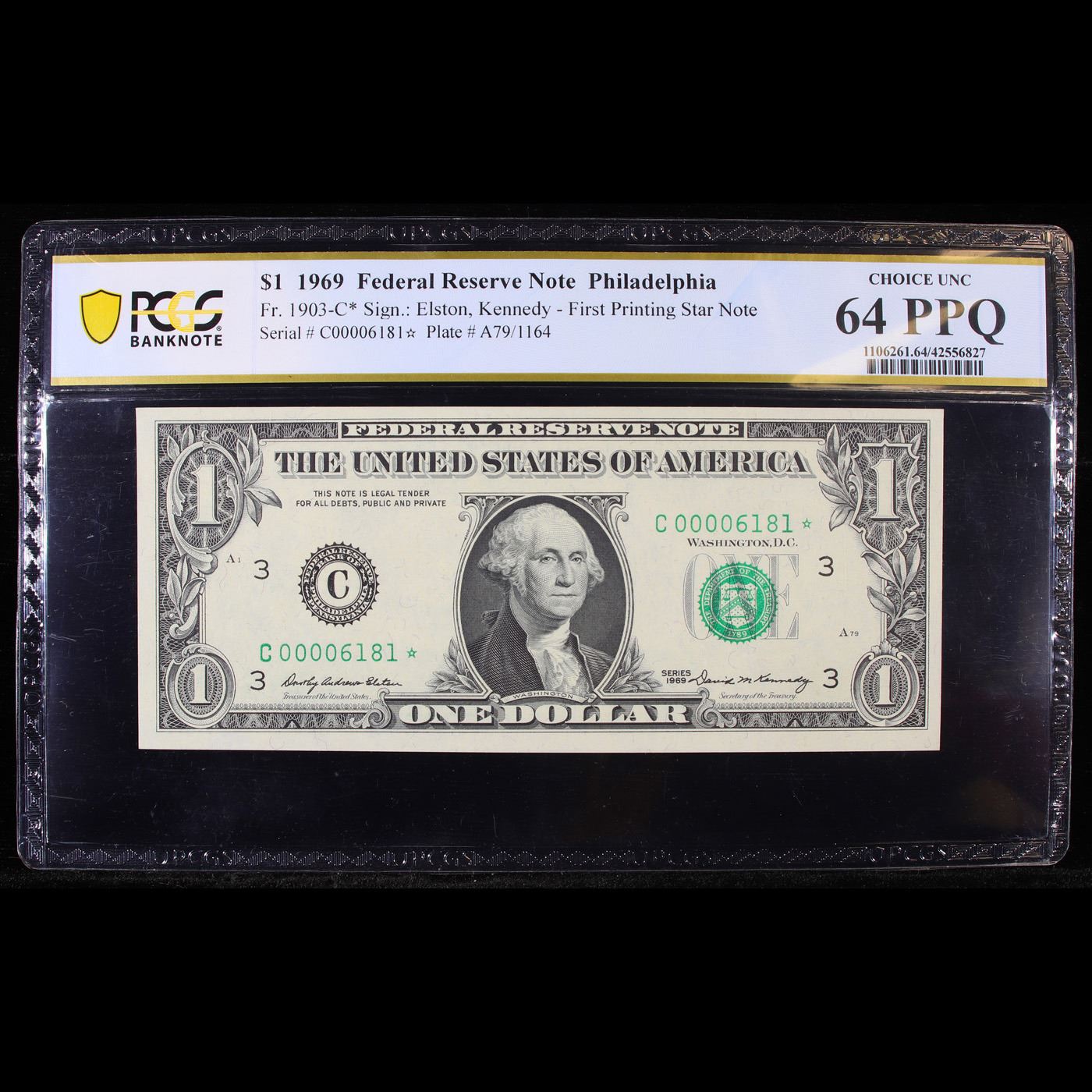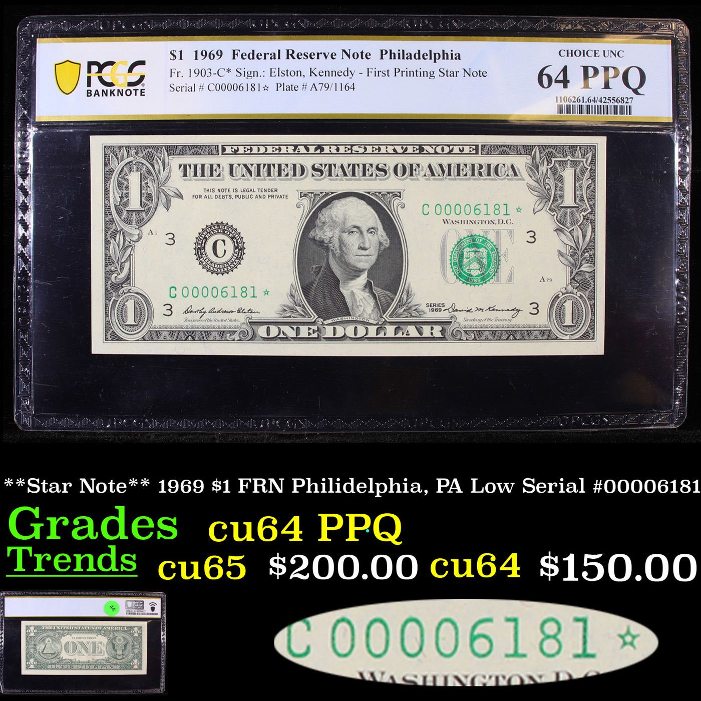 PCGS **Star Note** 1969 $1 FRN Philidelphia, PA Low Serial #00006181 Graded cu64 PPQ By PCGS.