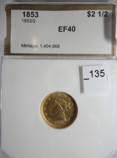PCI 1853/2 $2 1/2 Gold EF40, "Priced as common date"