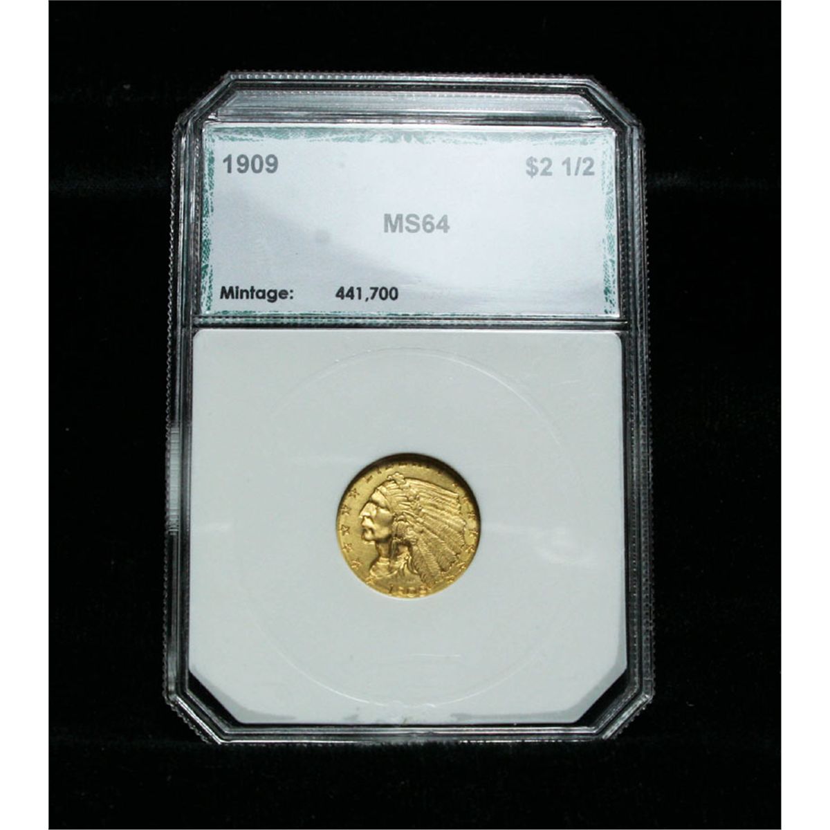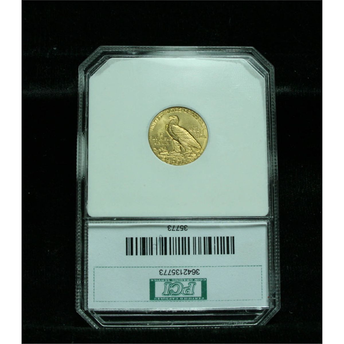 The $2 1/2 and $5 Gold Indian are the first incuse designed coins since ancient times. This is a Lustrous, Beautiful, and Very Clean Example of the 1909-p. It is graded by PCI, which is listed as a recognized professional grading company by the Greysheet and is listed on the cover of every issue along with PCGS and NGC. PCI Slabs were holdered in several different color holders over the past 20+ years. The Old Green holders are over 20 years old and are considered to be conservatively graded. This coin is in an old green holder. PCI Was Established in 1989 and is one of the oldest grading companies. NGC's Price Guide lists an ms64 at $3000. The Wholesale Greysheet lists an ms64 at $2375. Estimated Value $2600