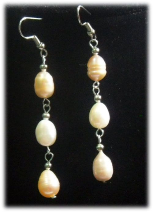 PEACH AND WHITE PEARL DANGLING EARRINGS **|**|** PEACH AND WHITE PEARL DANGLING EARRINGS ; MSRP: $100