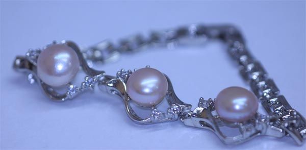 PEACH PEARL AND CZ BRACELET **|**|** PEACH PEARL AND CZ BRACELET ; MSRP: $100