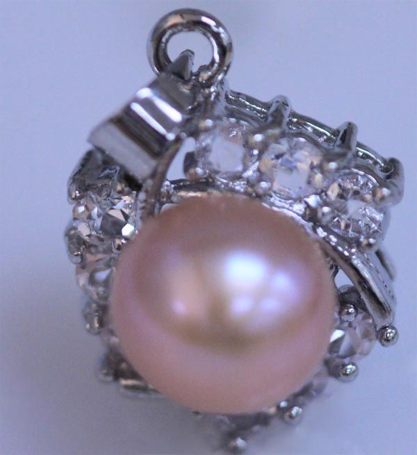 PEACH PEARL AND CZ PENDANT **|**|** PEACH PEARL AND CZ PENDANT ; MSRP: $100