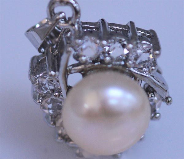 PEACH PEARL AND CZ PENDANT **|**|** PEACH PEARL AND CZ PENDANT ; MSRP: $100
