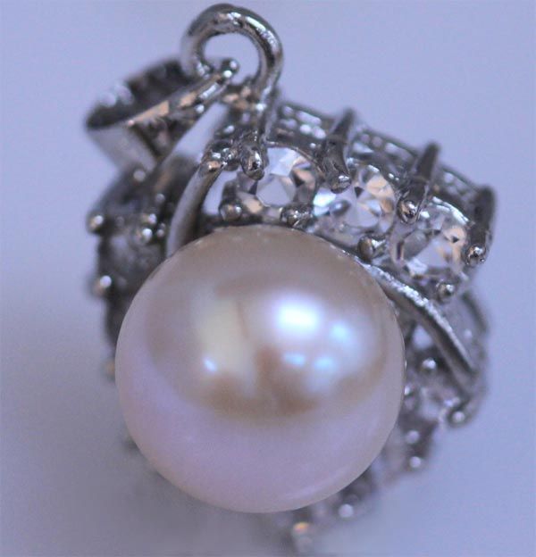 PEACH PEARL AND CZ PENDANT **|**|** PEACH PEARL AND CZ PENDANT ; MSRP: $100