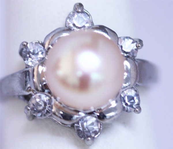 PEACH PEARL AND CZ RING **|**|** PEACH PEARL AND CZ RING ; MSRP: $200