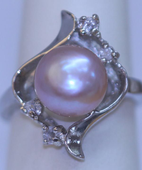 PEACH PEARL AND CZ RING **|**|** PEACH PEARL AND CZ RING ; MSRP: $100
