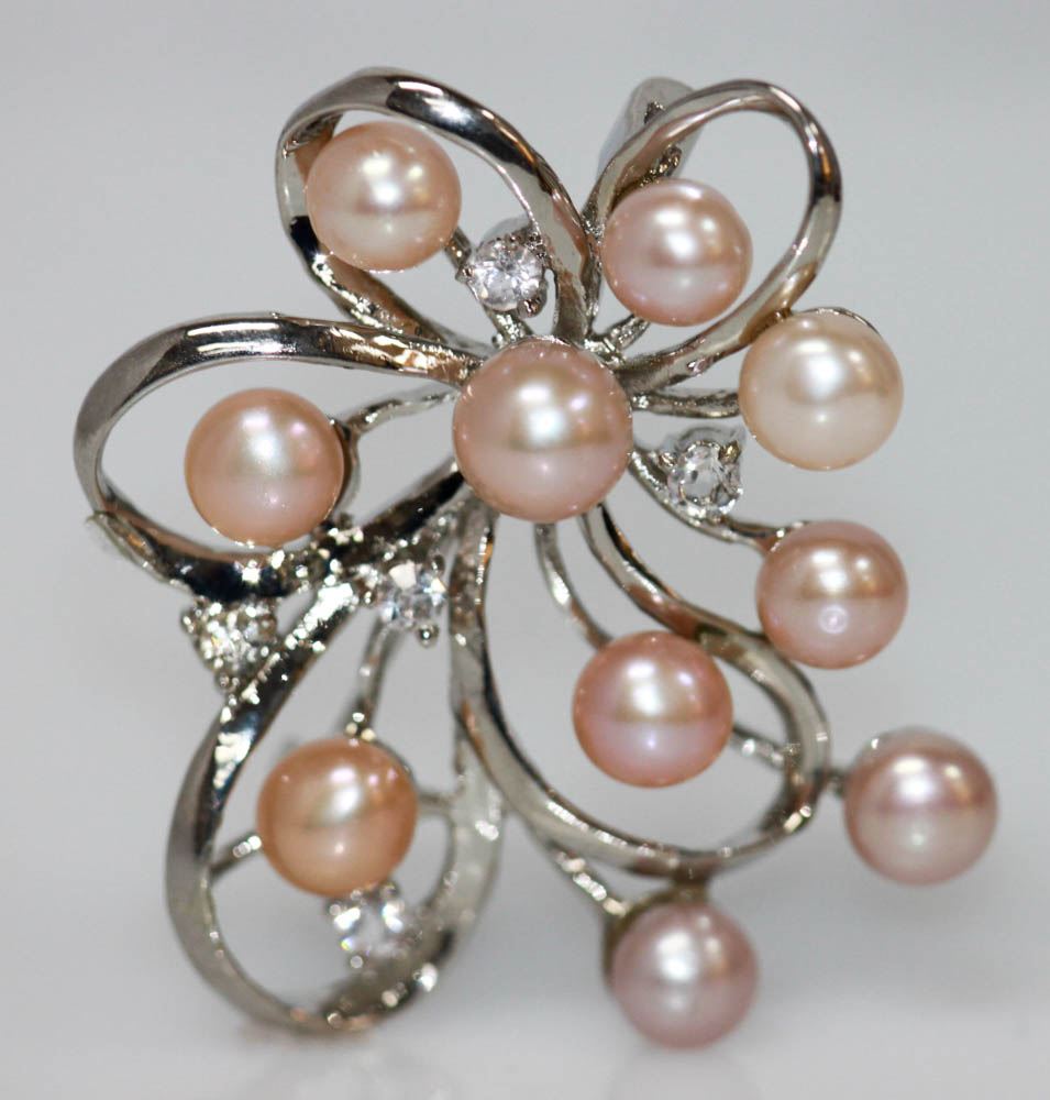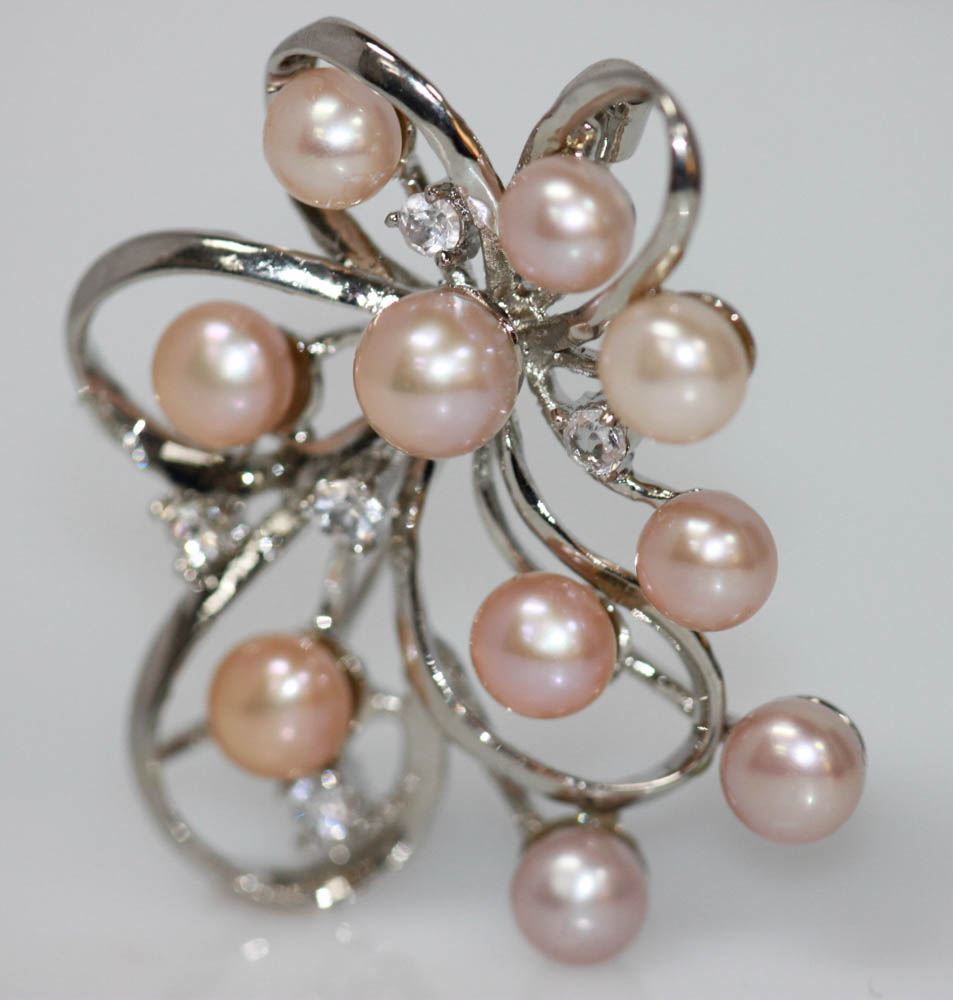 PEACH PEARL CZ BROOCH .925 STERLING SILVER **|**|** PEACH PEARL CZ BROOCH .925 STERLING SILVER
