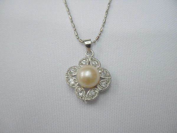 PEACH PEARL WITH 8 CZ PENDANT SILVER NECKLACE; METAL: S **|**|** PEACH PEARL WITH 8 CZ PENDANT SILVER NECKLACE; METAL: SILVER; PHILIPPINE PEARL ; MSRP: $500
