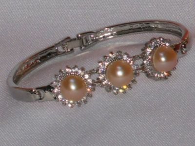 PEACH PEARL WITH CZ BANGLE SILVER BRACELET *** METAL: S **|**|** PEACH PEARL WITH CZ BANGLE SILVER BRACELET *** METAL: SILVER; APPROXIMATELY 15GRAMS ; MSRP: $200