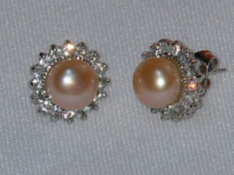 PEACH PEARL WITH CZ BANGLE SILVER EARRINGS *** METAL: S **|**|** PEACH PEARL WITH CZ BANGLE SILVER EARRINGS *** METAL: SILVER; PHILIPPINE PEARL ; MSRP: $200