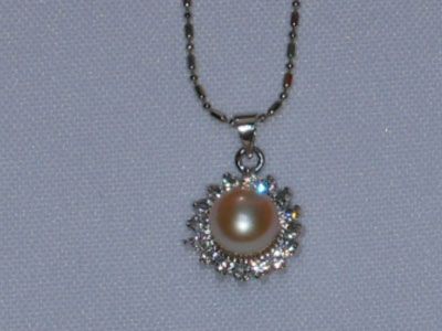 PEACH PEARL WITH CZ BANGLE SILVER NECKLACE *** METAL: S **|**|** PEACH PEARL WITH CZ BANGLE SILVER NECKLACE *** METAL: SILVER; PHILIPPINE PEARL ; MSRP: $200
