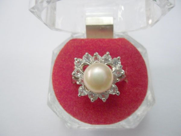 PEACH PEARL WITH CZ SILVER RING; METAL: SILVER; PHILIPP **|**|** PEACH PEARL WITH CZ SILVER RING; METAL: SILVER; PHILIPPINE PEARL; SIZE 7 ; MSRP: $500