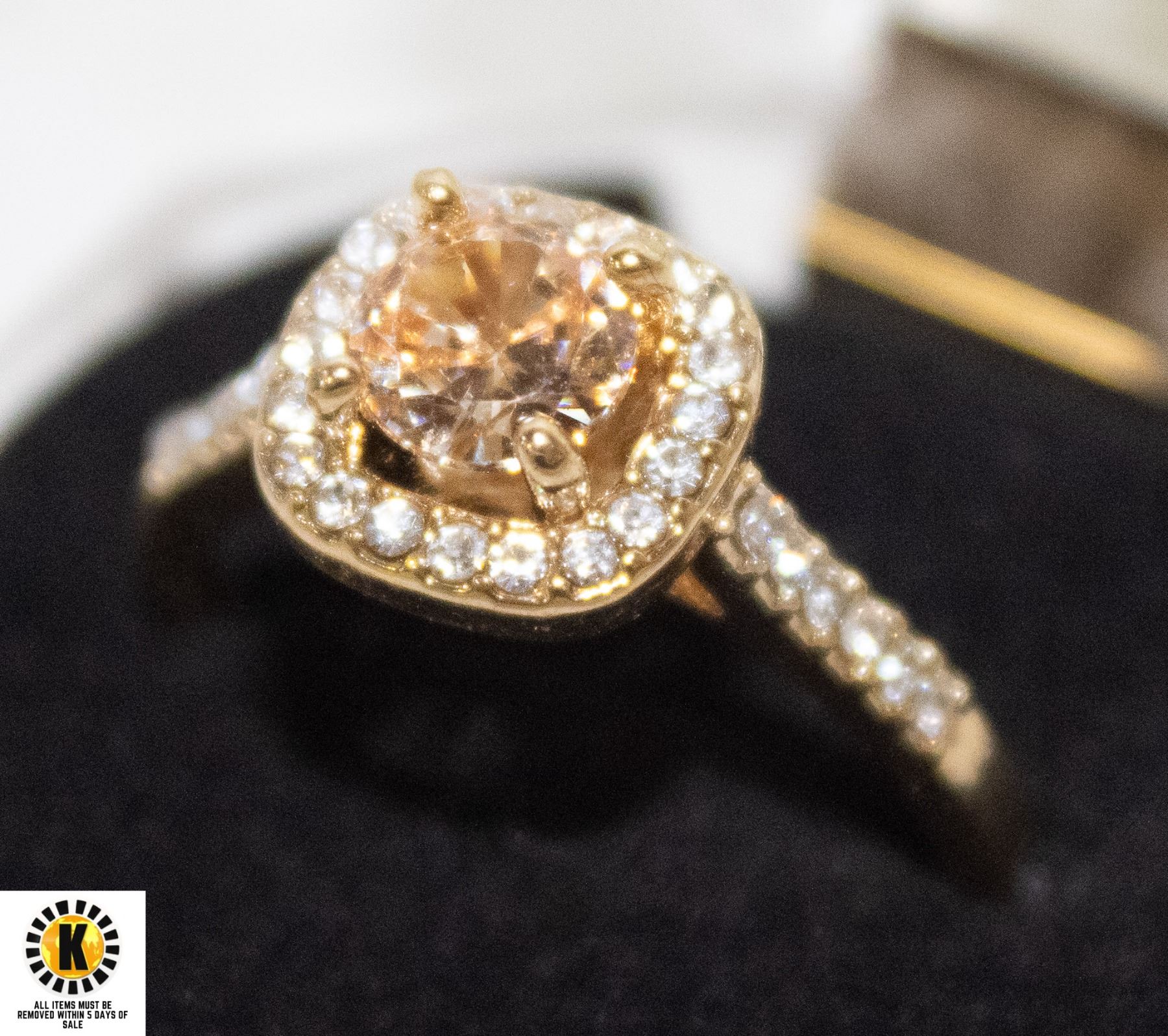 PEACH ROUND CUT CLEAR HALO W SIDE STONES
