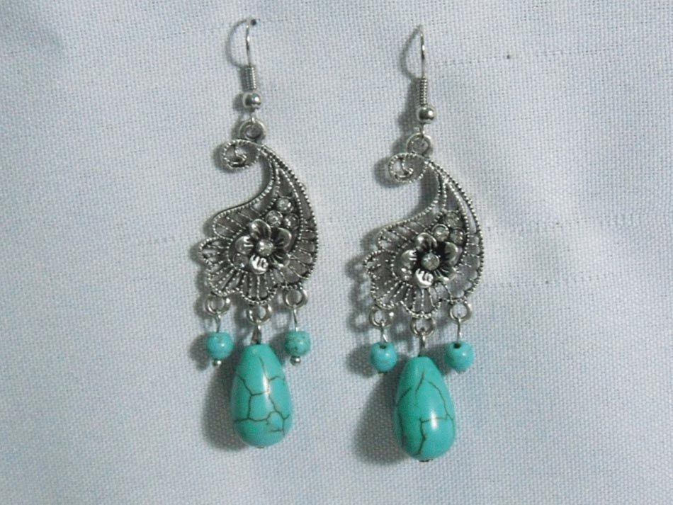 PEACOCK BLUE TURQUOISE DANGLING EARRINGS STONE BLUE TUR **|**|** PEACOCK BLUE TURQUOISE DANGLING EARRINGS STONE BLUE TURQUOISE METAL BRASS ; MSRP: $150