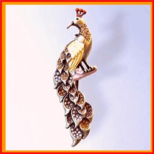 PEACOCK PIN BROOCH 24K GOLD & SWAROVSKI CRYSTALS