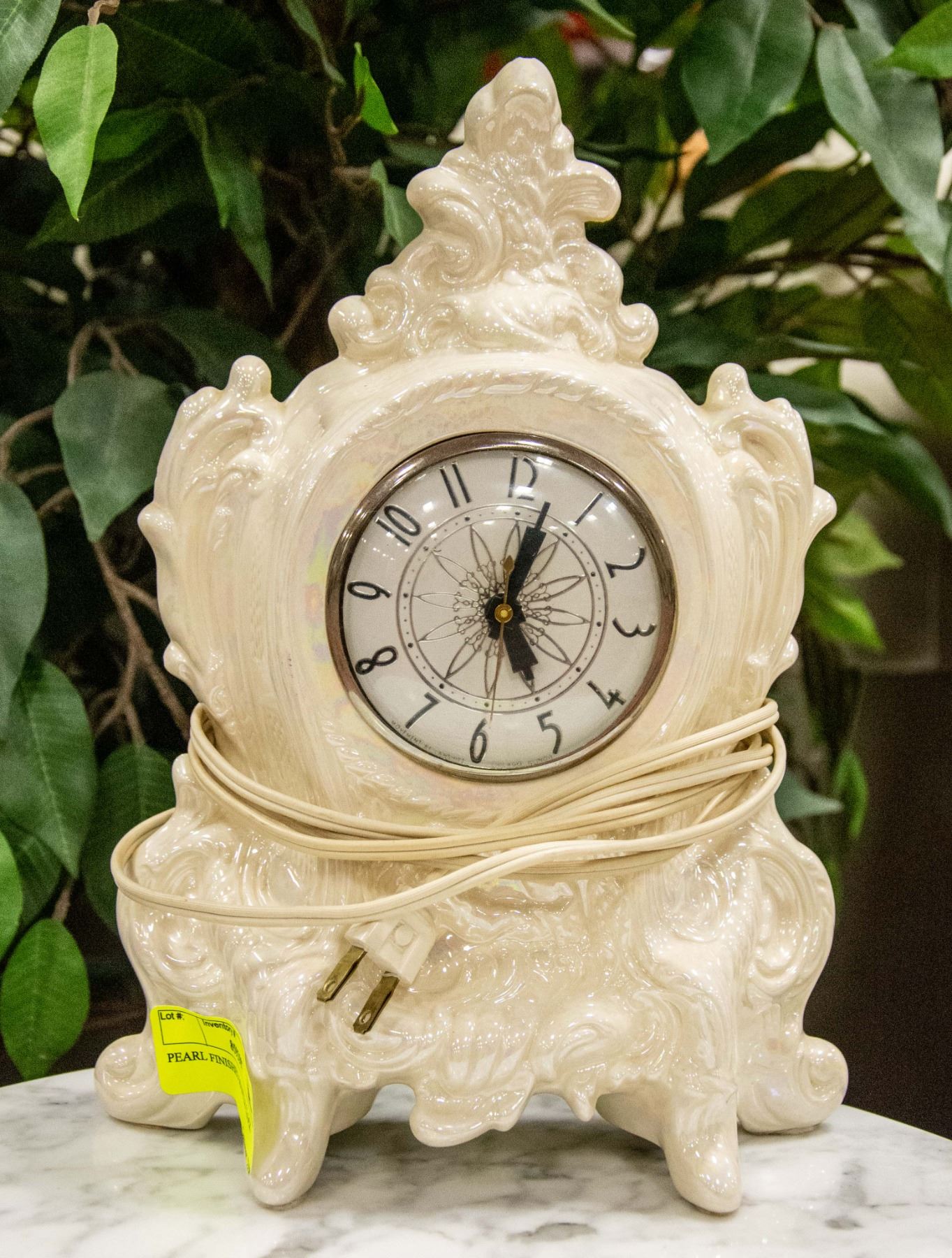 PEARL FINISHED MANTLE CLOCK APPROX 10" TALL