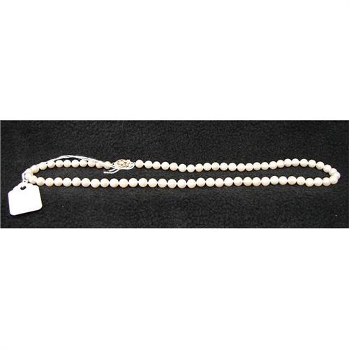 PEARL NECKLACE. With knotted pearls and 14K gold clasp. 17” L