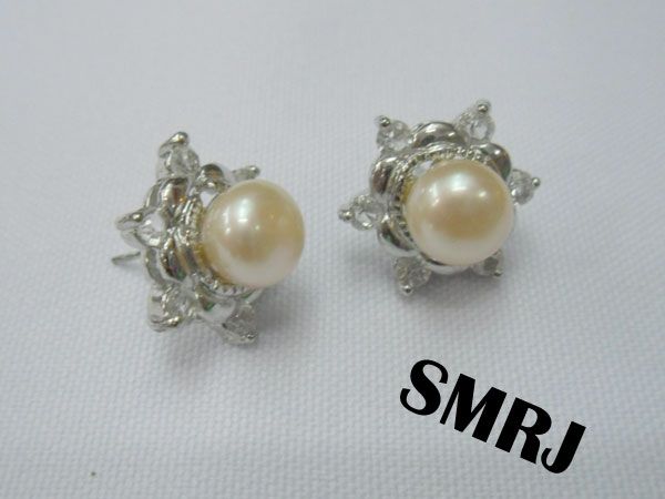 PEARL PEARL WITH 6 CZ SILVER EARRINGS; METAL: SILVER; P **|**|** PEARL PEARL WITH 6 CZ SILVER EARRINGS; METAL: SILVER; PHILIPPINE PEARL; 6CZ ; MSRP: $300