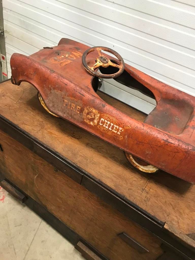 PEDAL CAR #5 FIRE CHIEF - MURRAY RESTO PROJECT, ORIG. WHEELS & HUB CAPS