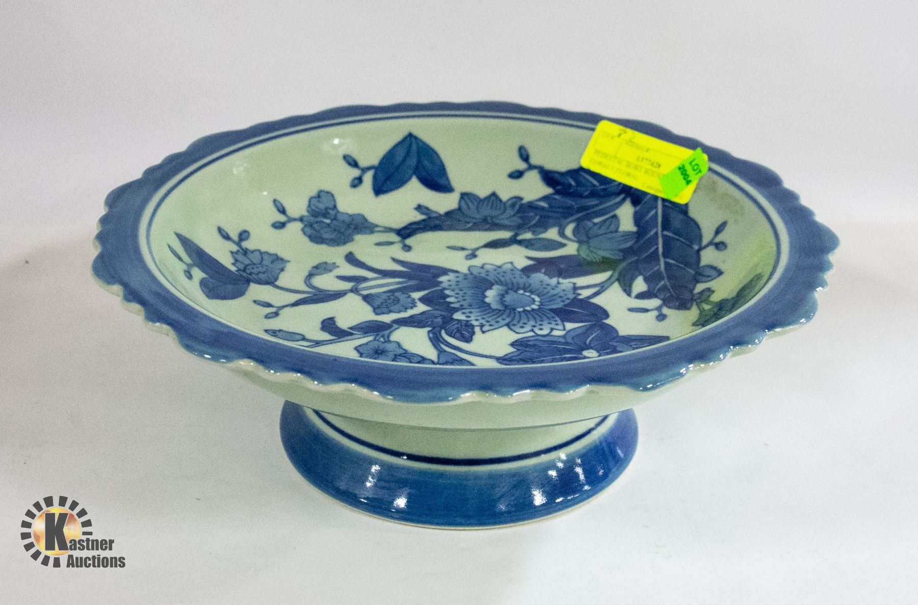 PEDESTAL BOWL ROUND 12” COBALT FLORAL