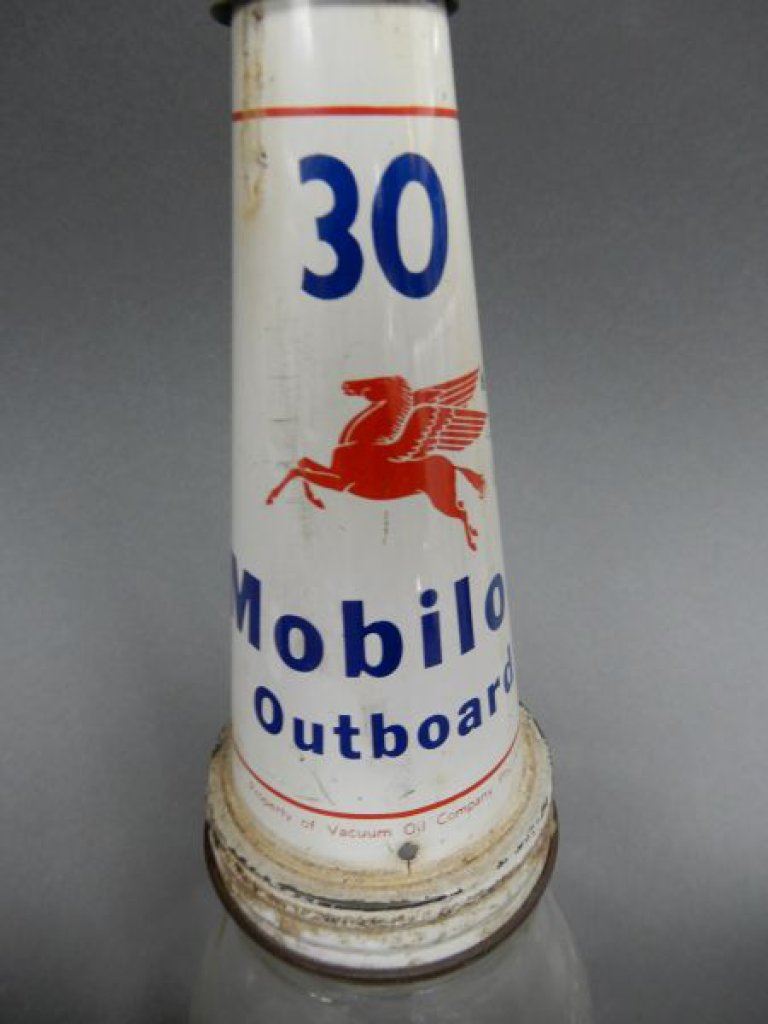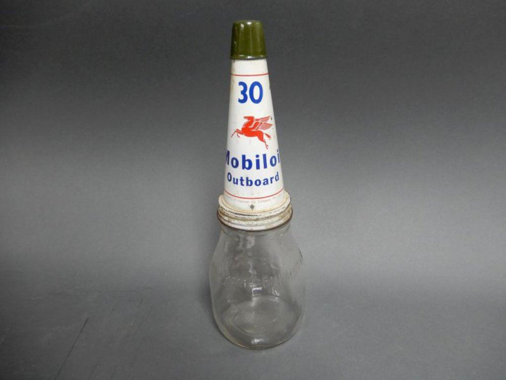 PEGASUS MOBILOIL OUTBOARD IMP PINT OIL BOTTLE WITH SPOUT & CAP - STAINING LOCATION: LOWER LEFT