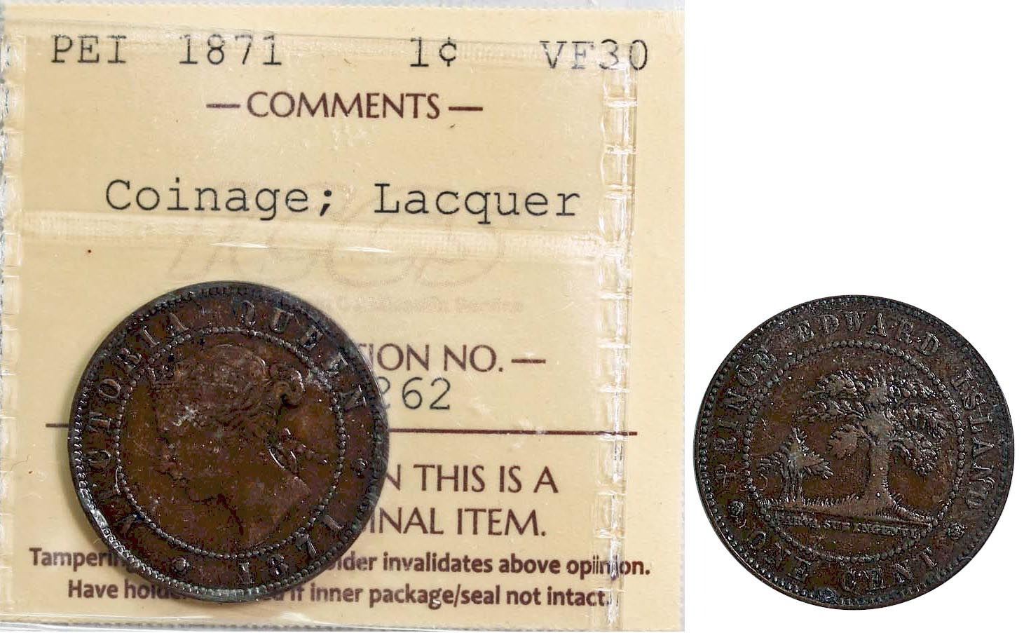 PEI; 1871 1¢ Coinage, Lacquer ICCS Choice Very Fine-30.