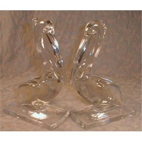 Beautiful pair (2) of pelican figurines or bookends. Crystal clear molded glass. Model #761 made by New Martinsville Glass.