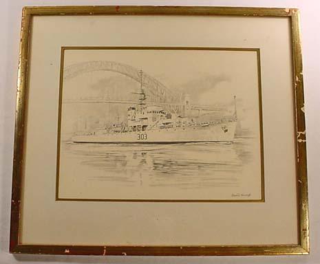 PENCIL DRAWING OF A SHIP - SIGNED EDWARD GOODALL - FRAMED - Condition issues to Frame. Approx. 15.75" x 13.75"