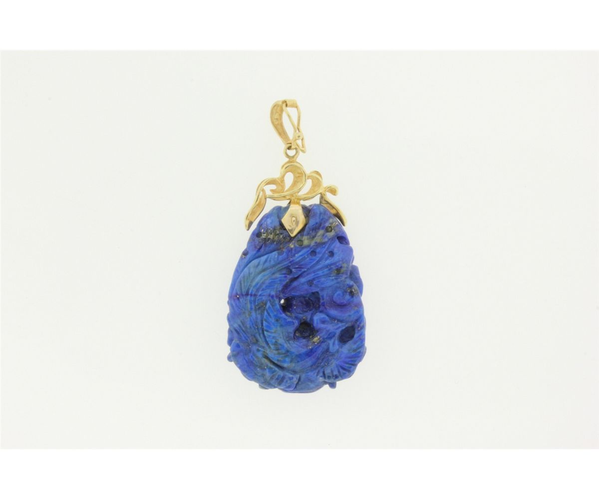 PENDANT: [1] 14KYG pendant with a carved piece of lapis in a dragon motif; 11.3 grams.