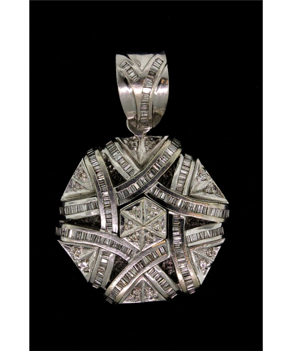 PENDANT: [1]14k WG medallion pendant set with 210 baguette and 18 rd diamonds, TWA 3.5 cts, I-K, SI