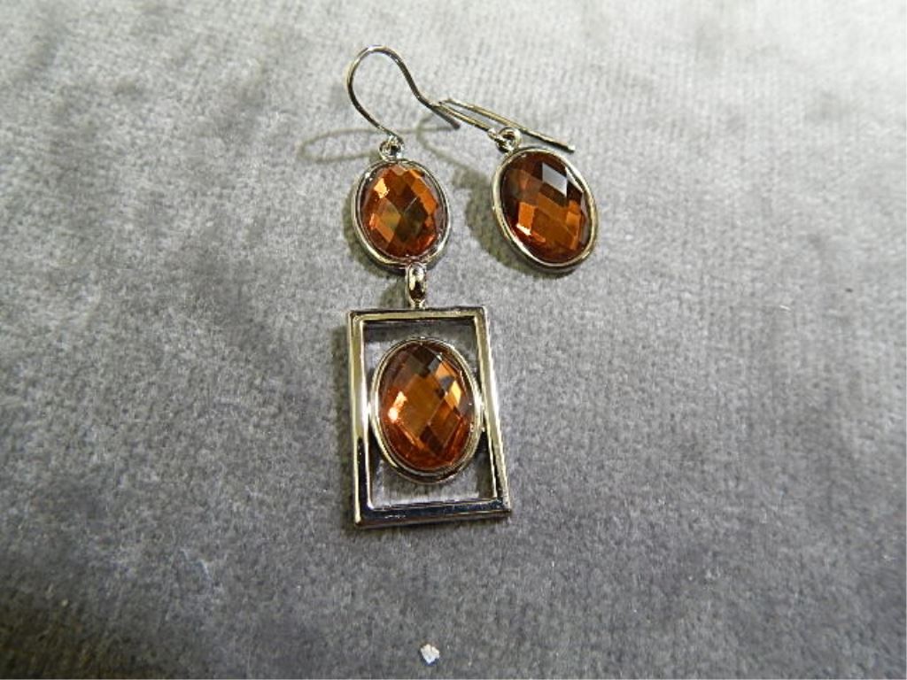 PENDANT AND EARING SET - SHEPARD HOOKS - TOPAZ COLORED STONES
