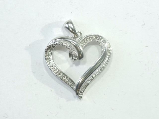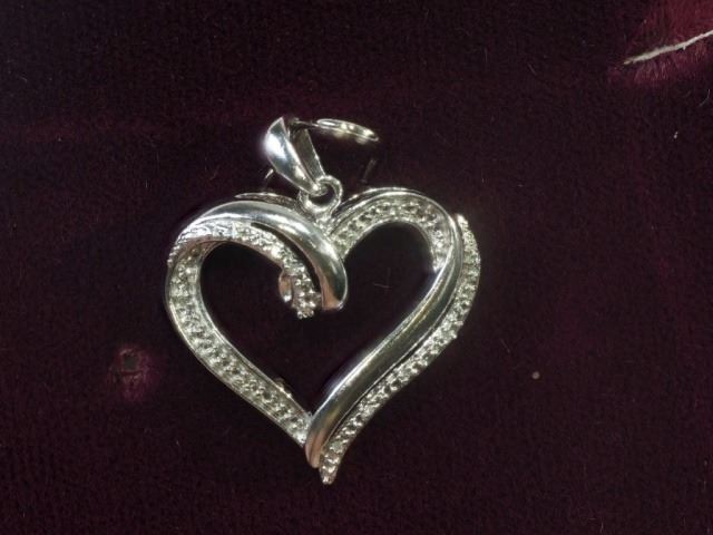 PENDANT - DIAMONDS IN STERLING SILVER RIBBON HEART DESIGN SETTING - WITH CERTIFICATE $737