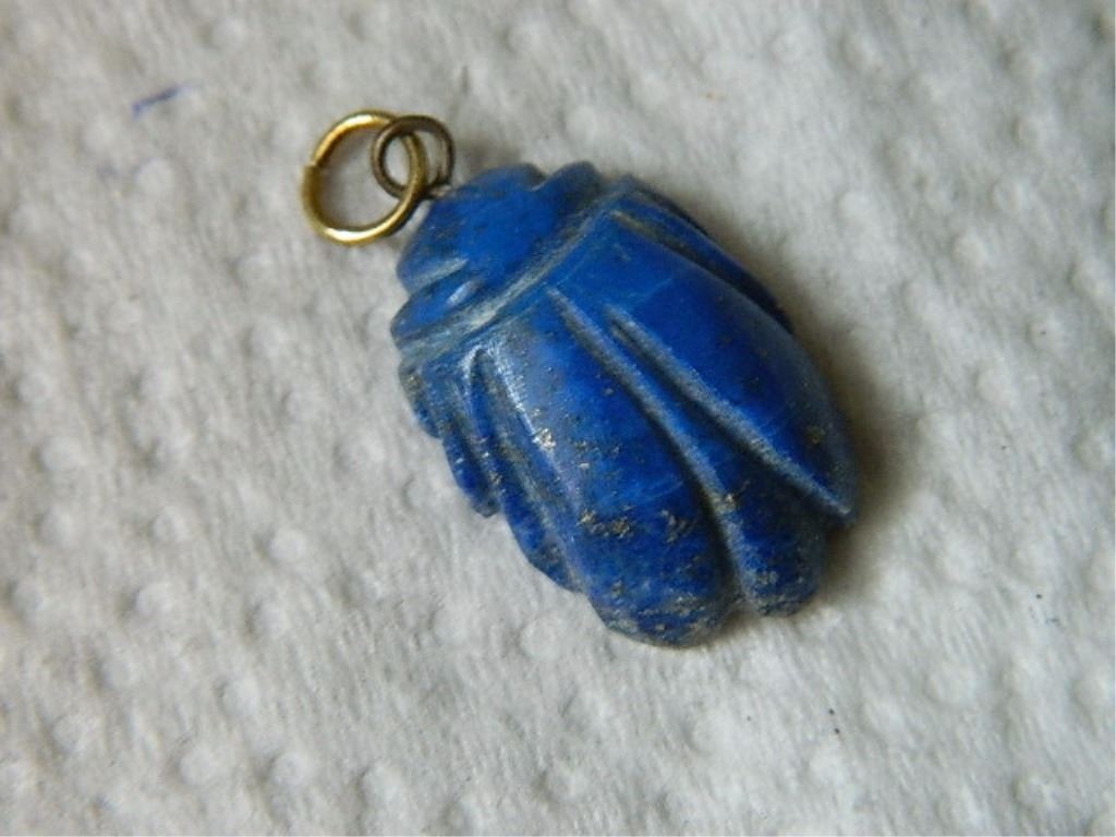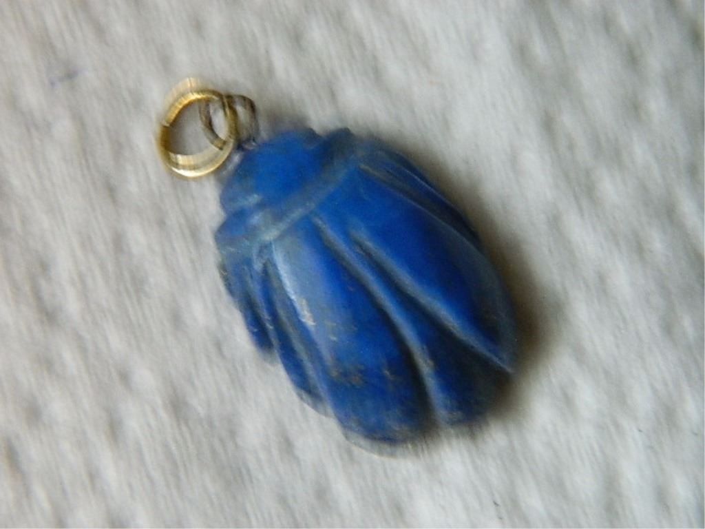 PENDANT - HAND CRAFTED CARVED LAPIS STONE - SCARAB 1" LONG