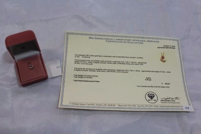 PENDANT - NEW - FLOWER DESIGNED 10K YELLOW GOLD WITH CUBIC ZIRCONIA STONES - WITH CERTIFICATE $450