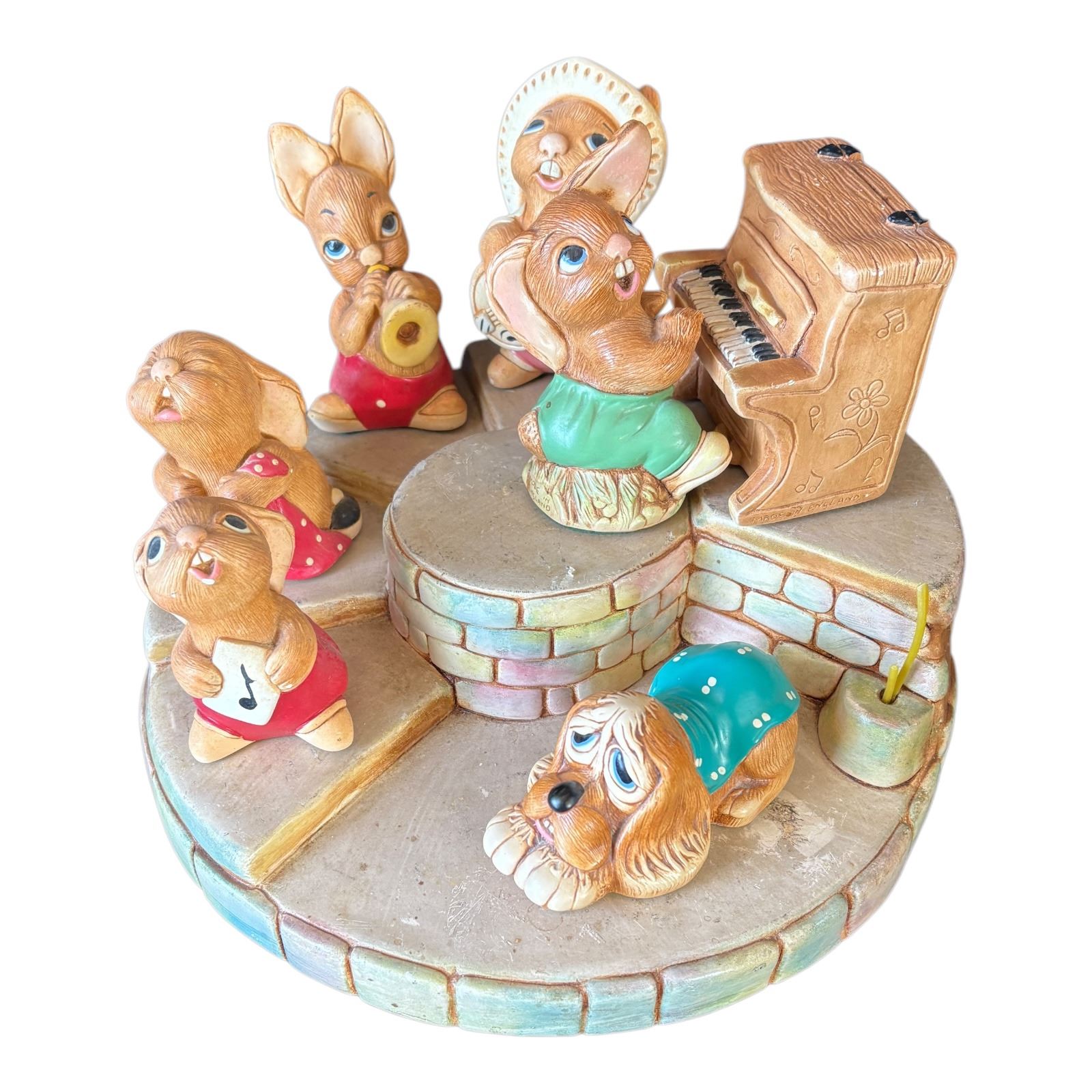 Includes stage and 7 characters (see photos), some with small chips in finish - 9.5 in.