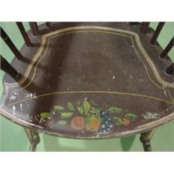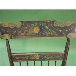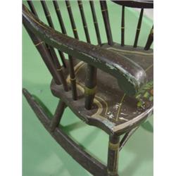 PENNSYLVANIA PAINT DECORATED ROCKER. Overpainted with fruit decoration on seat and back rest. Sleigh rockers. 39.75" H to top of back, 21.5" W