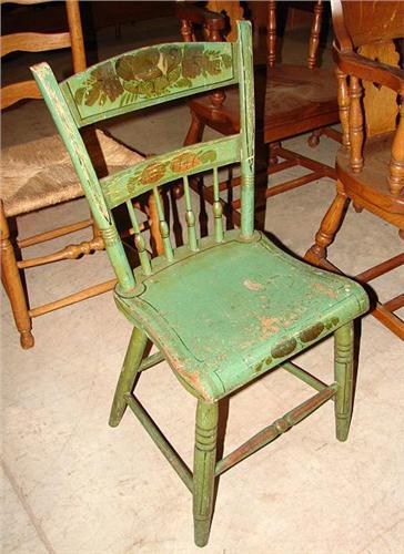 PENNSYLVANIA ORIGINAL PAINTED PLANK BOTTOM SIDE CHAIR. Hand painted floral decoration at top of back. 33" H to top of back.