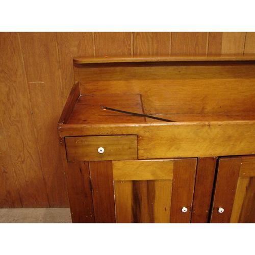 PENNSYLVANIA SOFTWOOD DRYSINK. Has two raised panel doors at bottom with single dovetailed drawer at top right with shelf on top of splashback. 41” H, 48” L, 19” D
