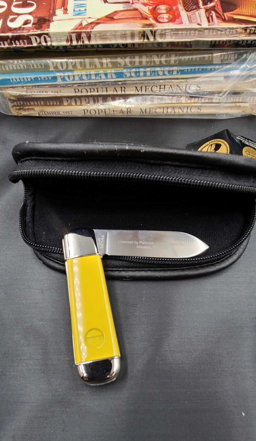 PENNZOIL FRANKLIN MINT KNIFE & VINTAGE POPULAR SCIENCE MAGAZINES