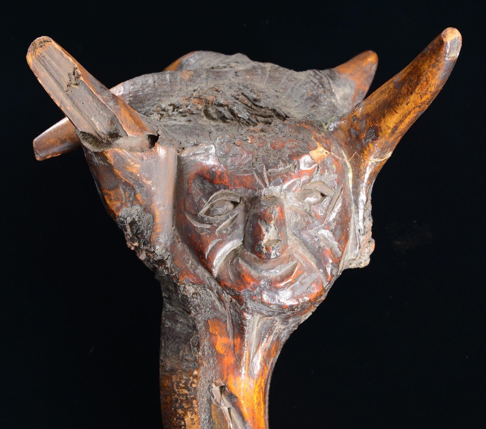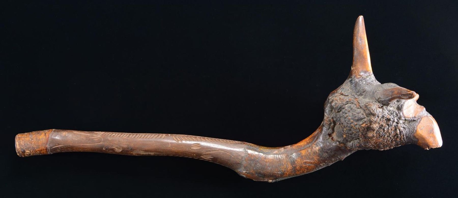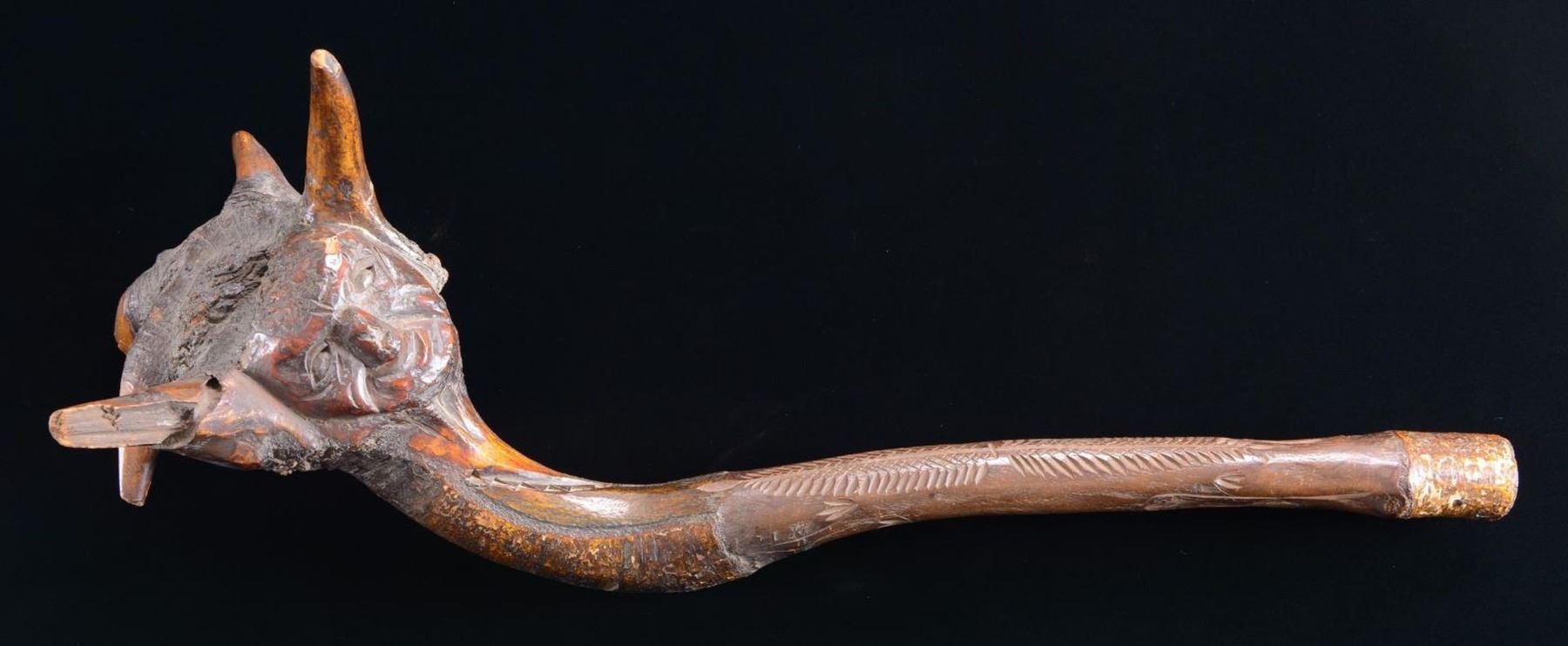 PENOBSCOT TRIBE CARVED FIGURAL WAR CLUB.