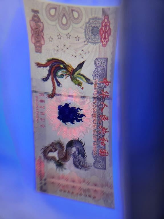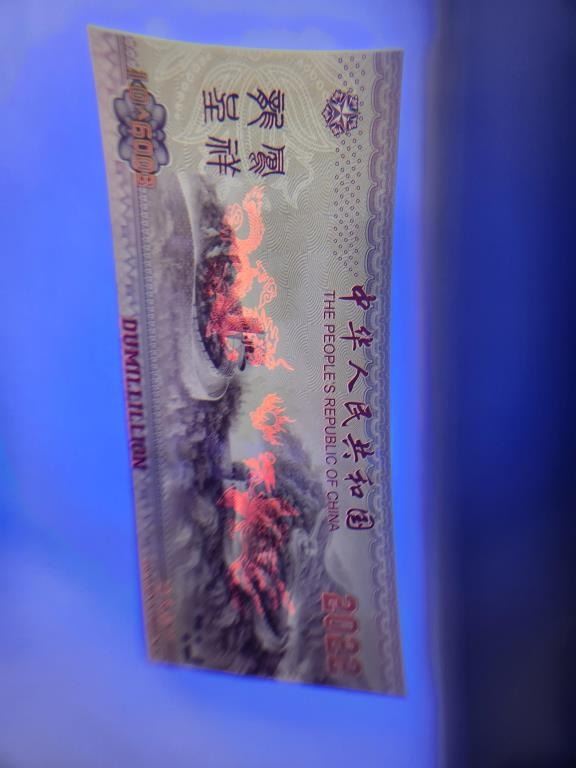 COLORIZED BILL WITH UV SECURITY MARKS.