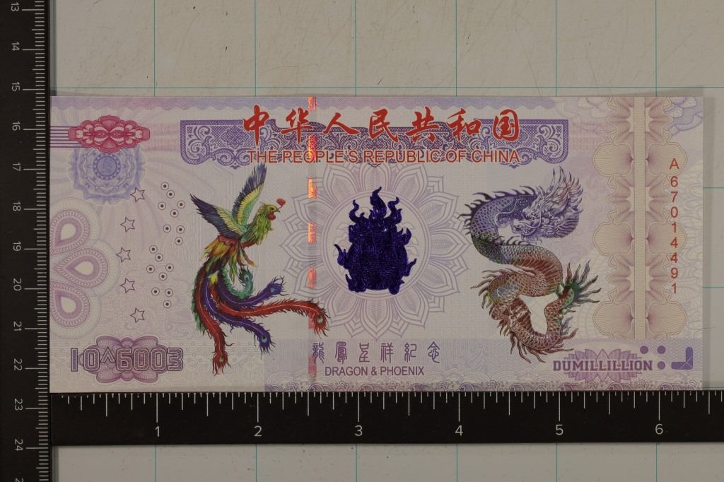 CRISP UNC BILL WITH UV SECURITY MARKS ON OBVERSE AND REVERSE, DRAGON AND PHOENIX