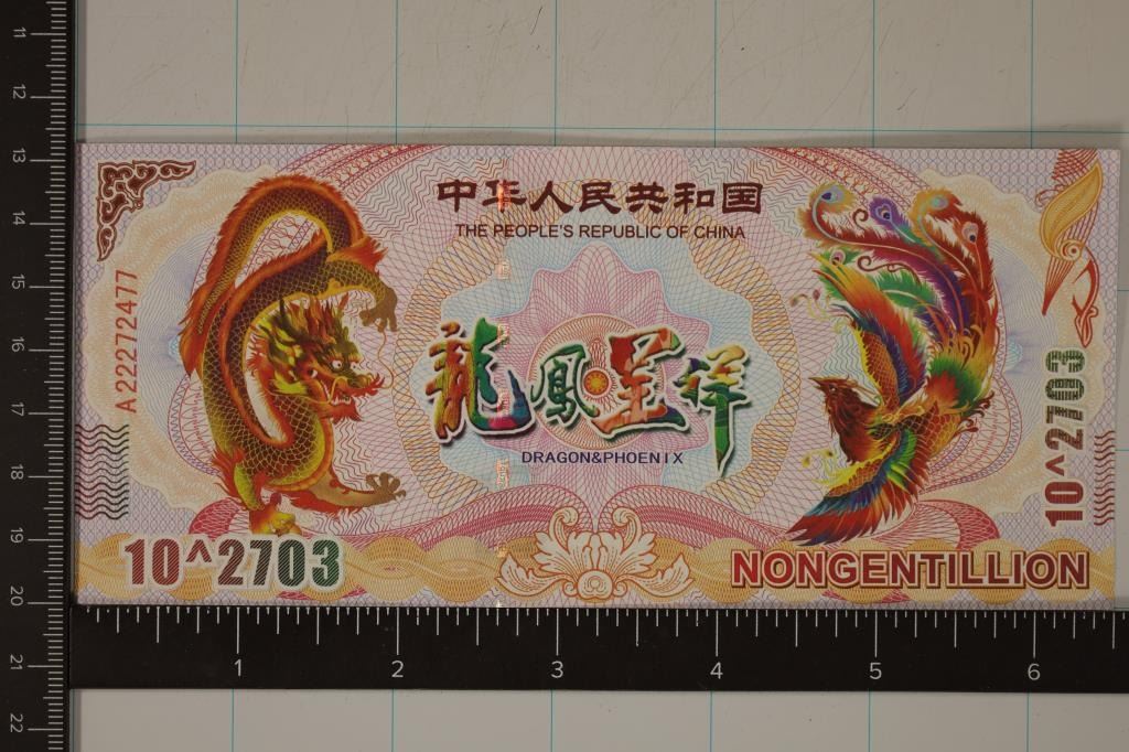 COLORIZED DRAGON AND PHOENIX BILL WITH UV SECURITY MARKINGS