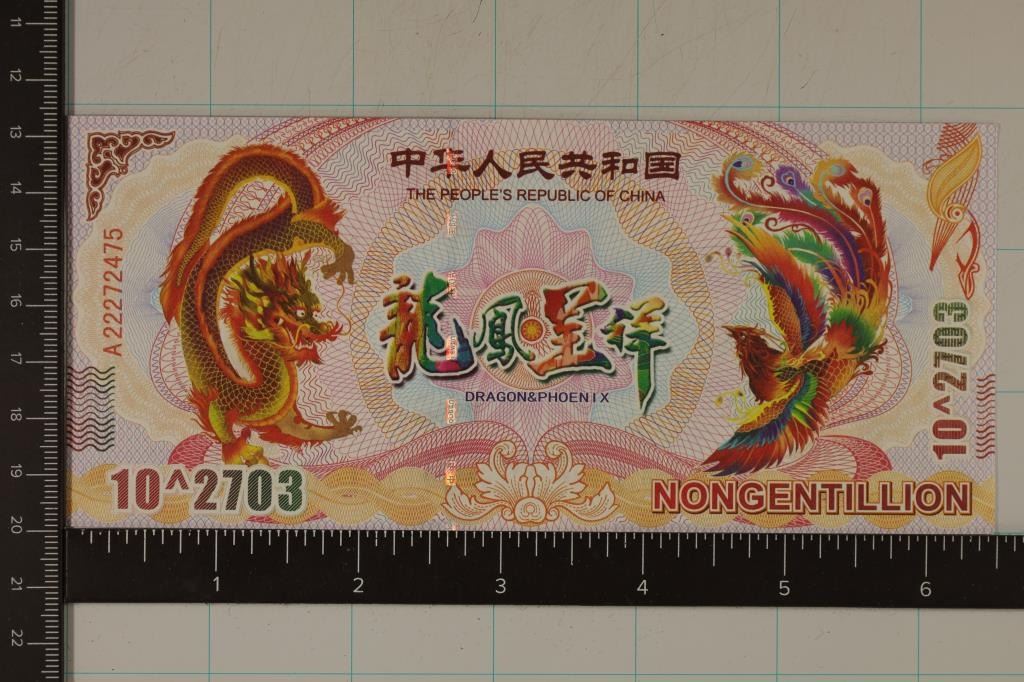 CRISP UNC COLORIZED BILL WITH UV MARKS ON OBVERSE AND REVERSE. DRAGON AND PHEONIX DESIGN