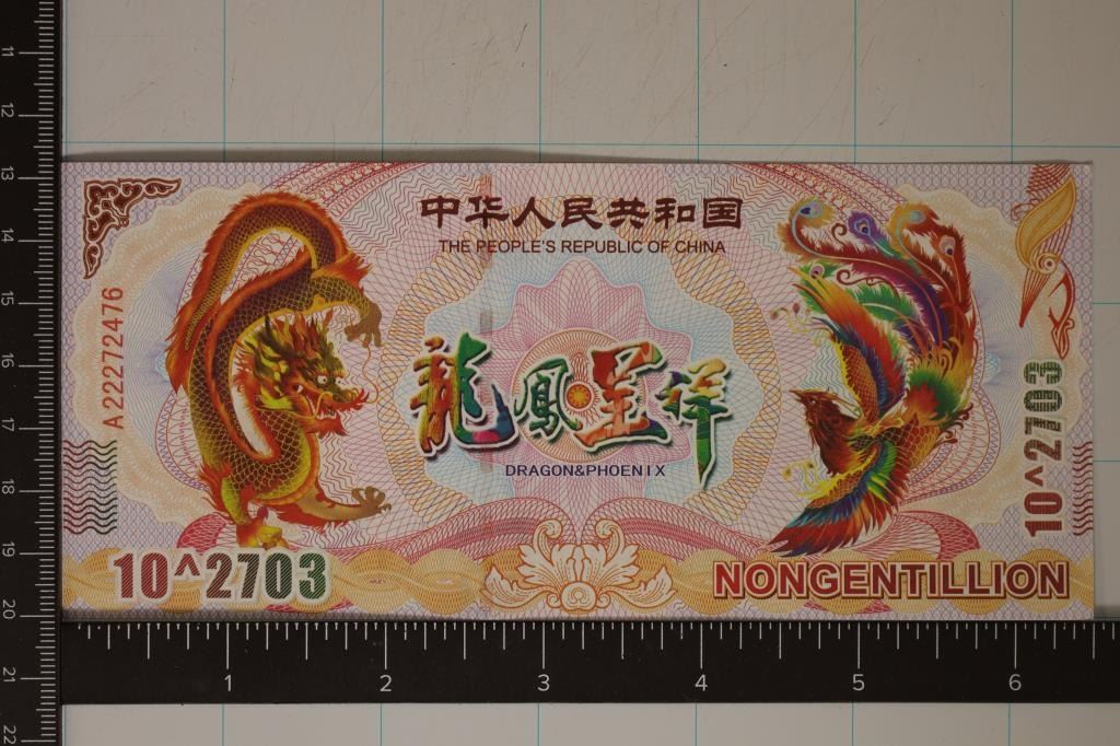 CRISP UNC COLORIZED BILL WITH UV MARKS ON OBVERSE AND REVERSE. DRAGON AND PHEONIX DESIGN