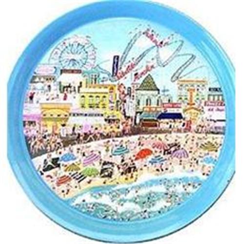 PEPSI-COLA SERVING TRAY -- 1950?s, 12½? diameter, tin litho, Coney Island beach scene, shows many Pepsi items, mint condition