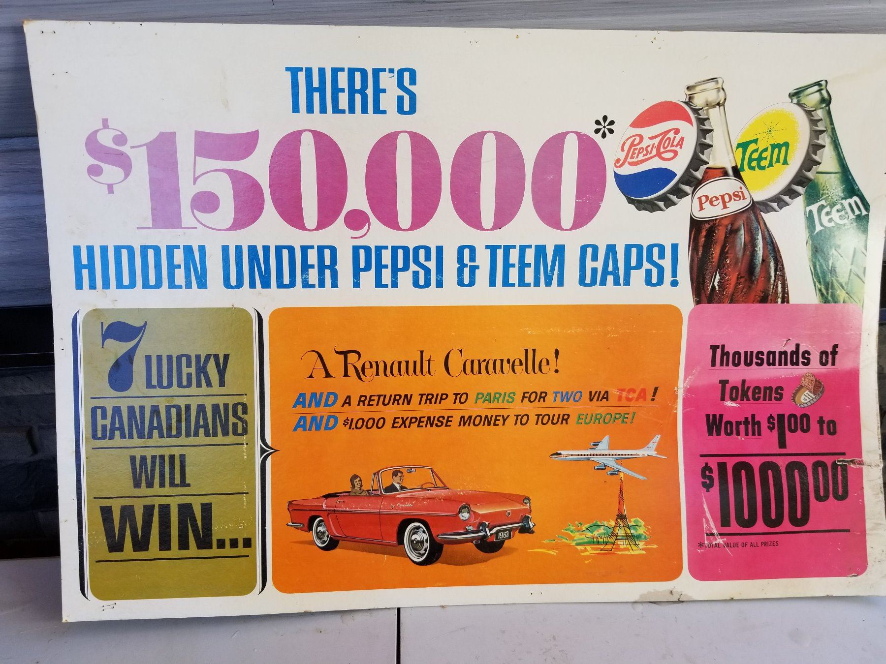 PEPSI TEAM CARDBOARD GIVE AWAY SIGN (1963) *CANADIAN*