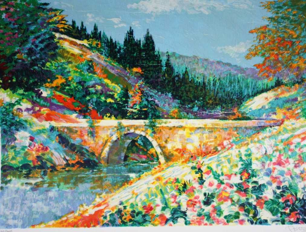 PEREZ "AFTERNOON MOUNTAINS" - HAND SIGNED, NUMBERED AND EMBELLISHED BY THE ARTIST - SERIGRAPH - HEAVY WOVE PAPER - HIGH QUALITY - PROFESSIONALLY FRAMED & MATTED - MINT